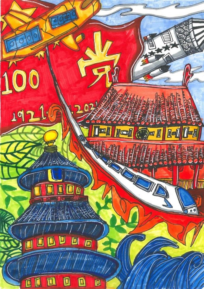 (二)作者:管爍然 年齡:10歲 作品名稱:《黨的生日》