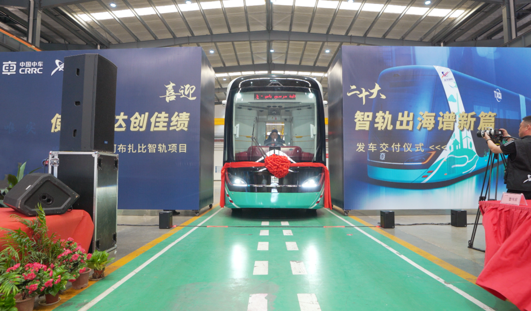 9月6日上午,伴隨著宏亮悠長的鳴笛聲,兩列三編組智軌電車緩緩駛出中車株洲所智行公司制造廠區,十天后它們將從廣州港“出海”,運往“一帶一路”沿線國家阿聯酋,這也是中車智軌首次批量交付的海外項目,為我國高端智造助力“一帶一路”增添了一抹亮麗的中國色彩。