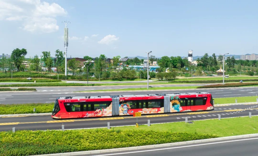 智軌電車所具備的綠色環保、建設周期短、成本低、適配性高等特點,加上科技感十足的外形和吸睛的文旅氣質,不僅能為城市交通接駁提供良好的解決方案,還將成為城市中一張流動的名片。
