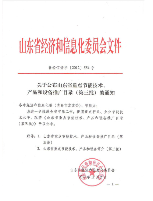 我公司“高效節能變頻軌道車輛空調機組”項目列入“山東省重點節能技術、產品和設備推廣目錄。