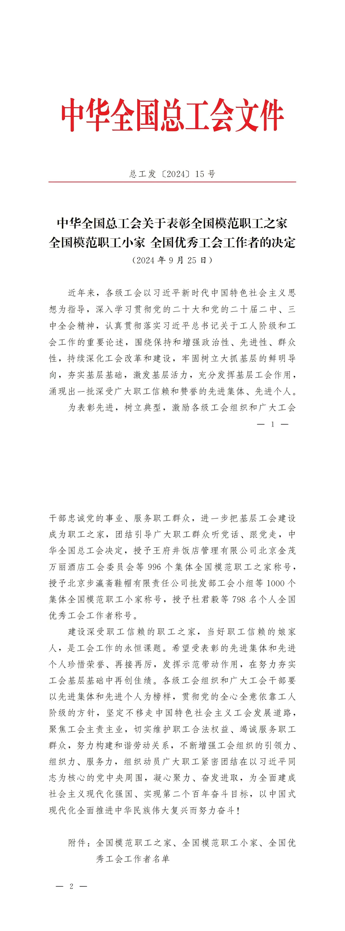 在這金秋送爽、碩果累累的美好時節,經過不懈努力與卓越表現,朗進科技榮獲“全國模范職工之家”這一崇高榮譽,令人振奮!“全國模范職工之家”榮譽稱號由中華全國總工會設立,是全國工會系統表彰先進集體的最高榮譽,是對基層工會工作的最高褒獎和肯定,是國家級的典型和標桿。