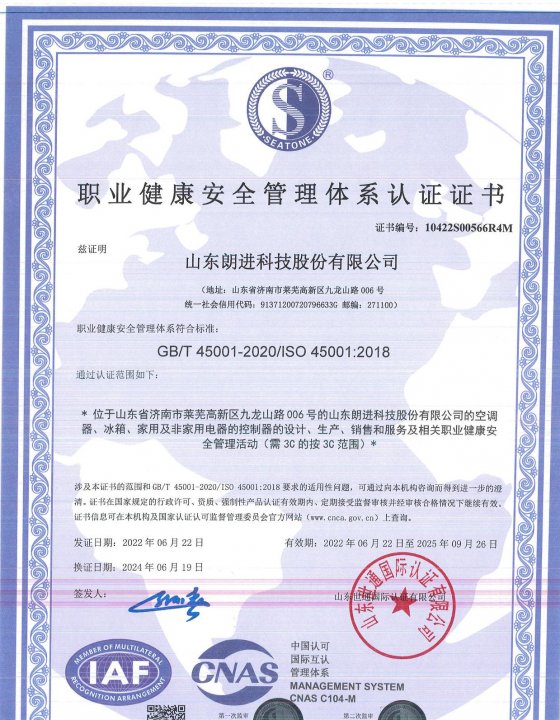 朗進(jìn)科技ISO9001質(zhì)量管理體系認(rèn)證
